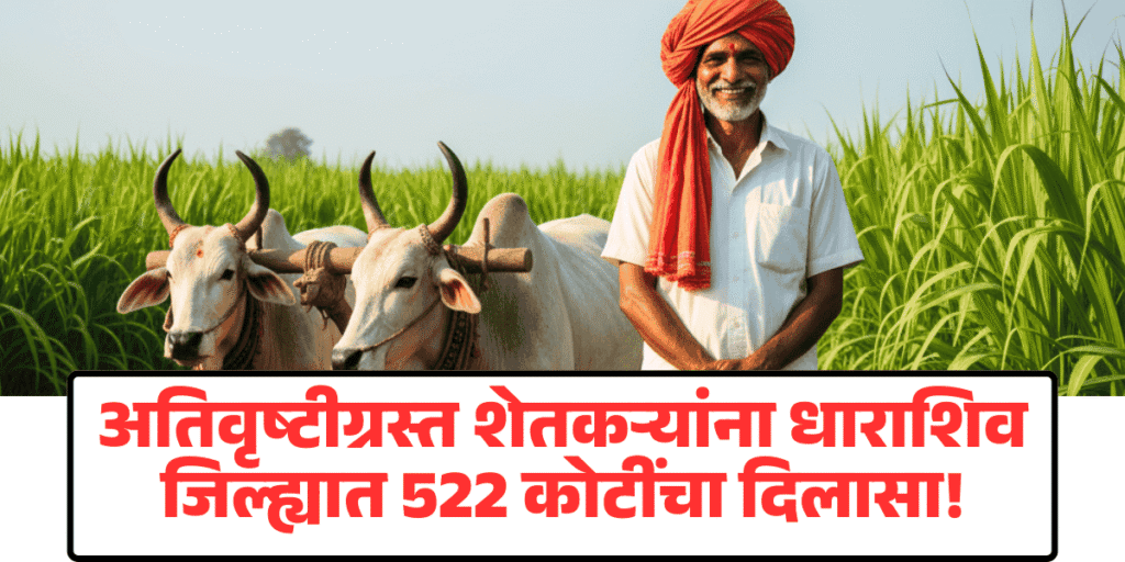 अतिवृष्टीग्रस्त शेतकऱ्यांना धाराशिव जिल्ह्यात 522 कोटींचा दिलासा — पण मदत कधी मिळणार? | Dharashiv farmers relief