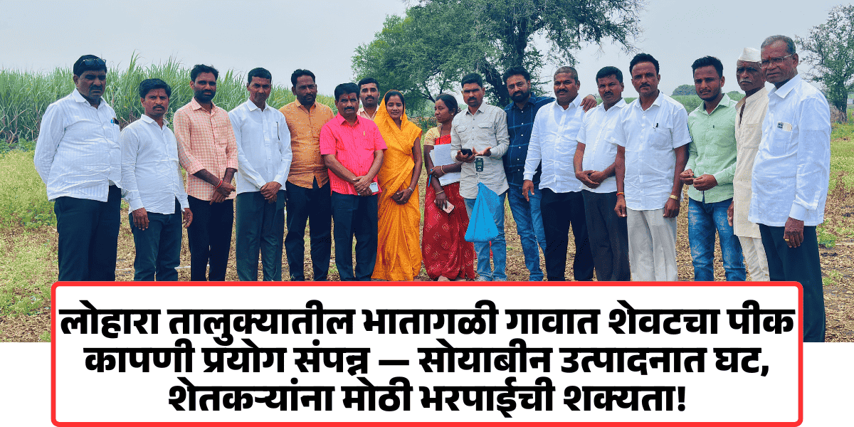 भातागळीतील 605 ग्रॅम सोयाबीन उत्पादन — पीक नुकसान भरपाईसाठी मोठी मदत मिळणार का? | Lohara crop cutting experiment 2025