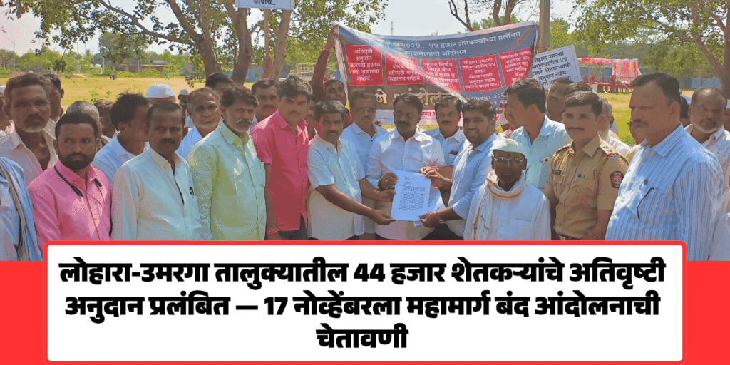 Lohara farmer protest | उमरगा-लोहारा तालुक्यातील 45 हजार शेतकऱ्यांचे अतिवृष्टी अनुदान रखडले; 7 नोव्हेंबरला धरणे आंदोलन