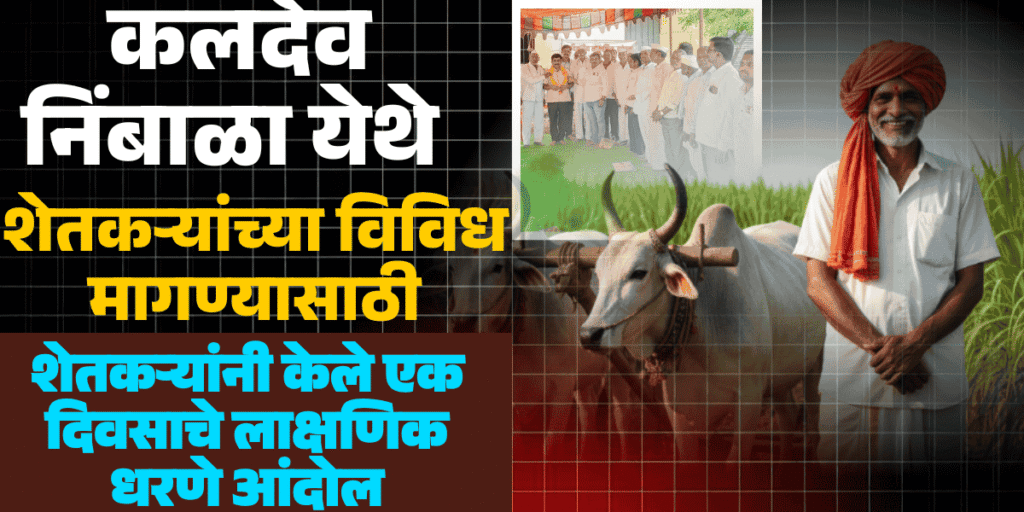 kaldevo Nimbala farmers protest : कलदेव निंबाळा येथे शेतकऱ्यांचे लाक्षणिक धरणे आंदोलन – कर्जमाफी व पिक विमा पुनश्च सुरू करण्याची मागणी