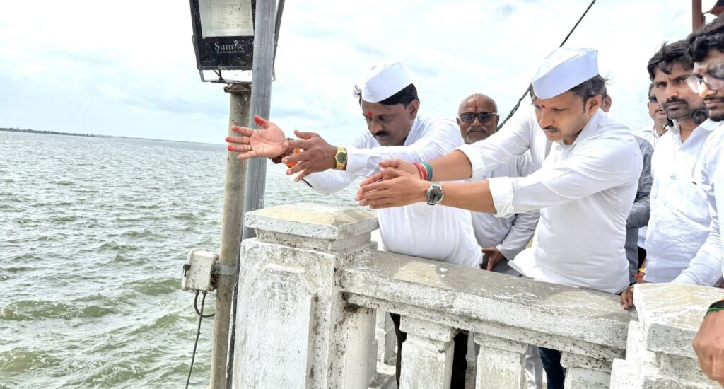 Terna Dam : निम्न तेरणा प्रकल्पाच्या जलाशयाचे खासदार ओमराजे निंबाळकर ,आमदार प्रवीण स्वामी ,शेतकरी नेते अनिल जगताप, युवा नेते अजिंक्य बापू पाटील यांच्या हस्ते जलपूजन.